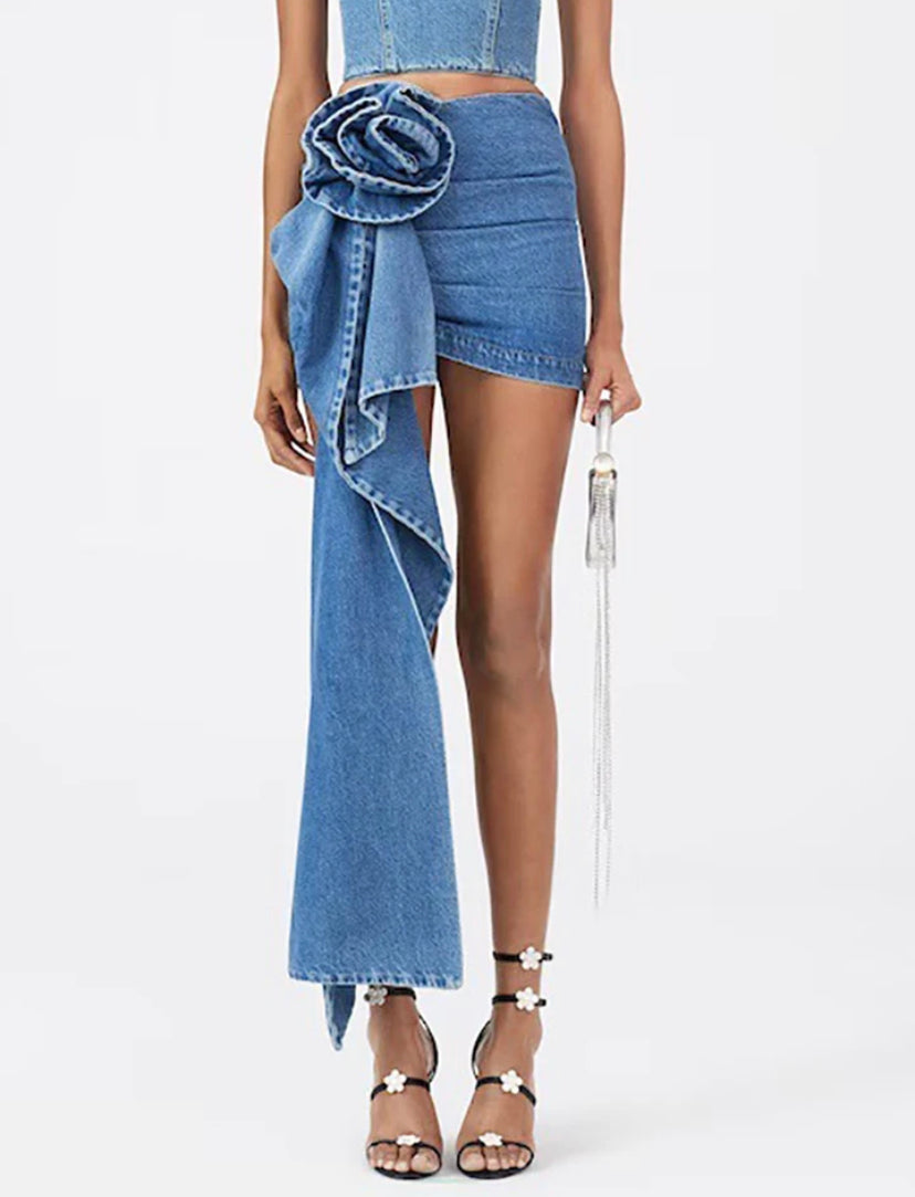 Falda demin con aplique floral